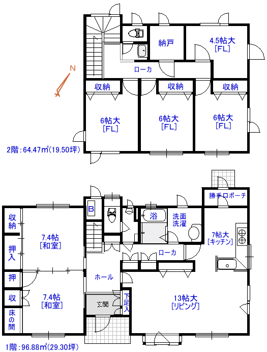| 建蔽率 | 50% | 2階面積 | 64.47u[19.50坪] | ◆小学校 | 市立福村小学校 |