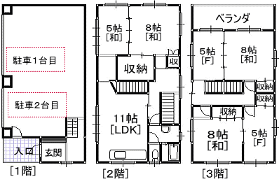 | 築年 | ・・・・・・・・・・ | 駐車 | 2台可(車庫) | 駐車 | 1台目:無料 | 駐車 | 2台目:無料 |